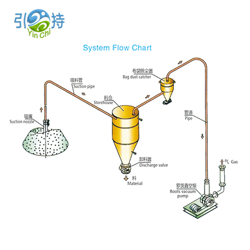 Mekanis: ponp vakyòm (-0.04 a -0.08 MPa) rale materyèl ki soti nan kamyonèt miltip nan yon sèl reseptè.